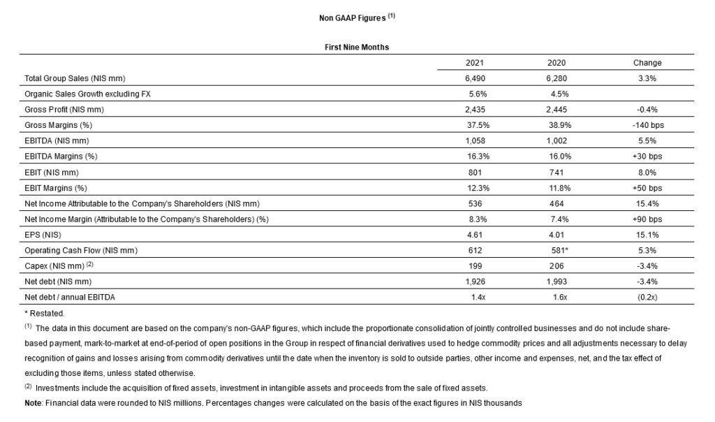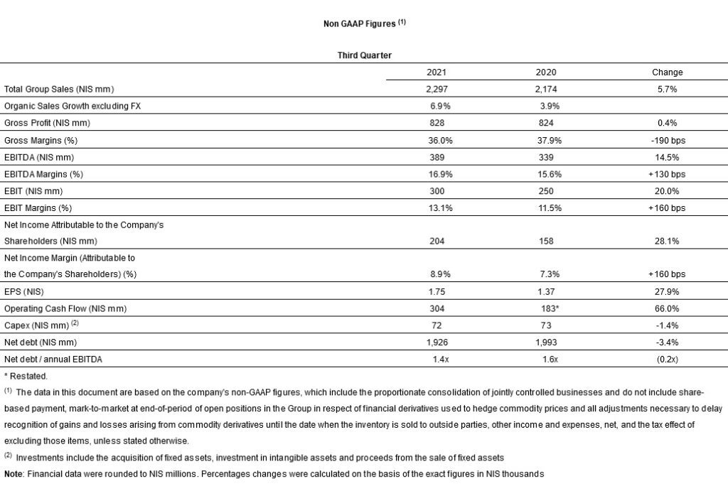 Strauss Water continued to grow with sales rising by 4.9% to approximately NIS 192 million. The company, which in the past quarter launched its new tami4edge water bar, has reported growth in both the number of customers and in the number of new appliances sold. The water business in China (Haier Strauss Water (HSW)), where the fight against COVID-19 continues, grew 8.9% in the third quarter.