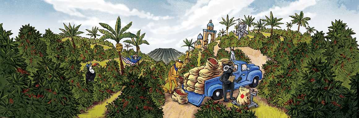 Inspired by the works of Richard Scarry and Frank Soltesz, the ‘This Is Coffee’ project sought to create some-thing that would not only be beautiful, but would also inform coffee drinkers about the hard work put in by the many hands along the coffee supply chain.