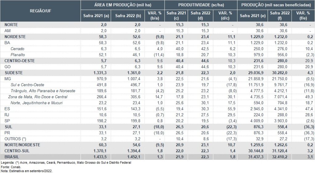 Conab said that 2022 would technically have been an on-year in the crop’s biennial production cycle, but weather problems in 2021 carried over into this year and negatively affected production.