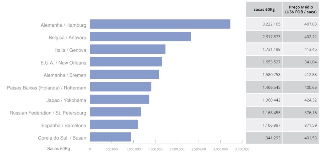 Hamburg remains the leading destination port, with over 3.2 million bags, ahead of Antwerp and Genoa.