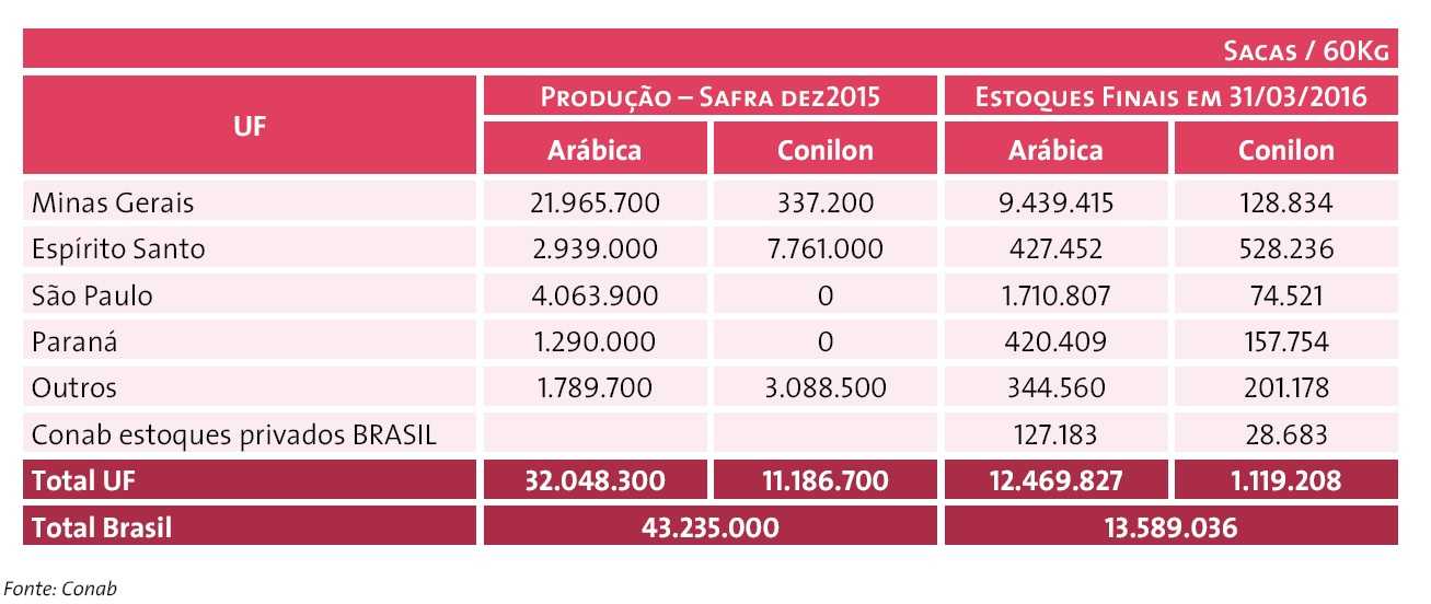 Arabica inventories amounted to 12.469.827 bags, or 92 percent of the total, the remaining being made up of Robusta (Conillon).