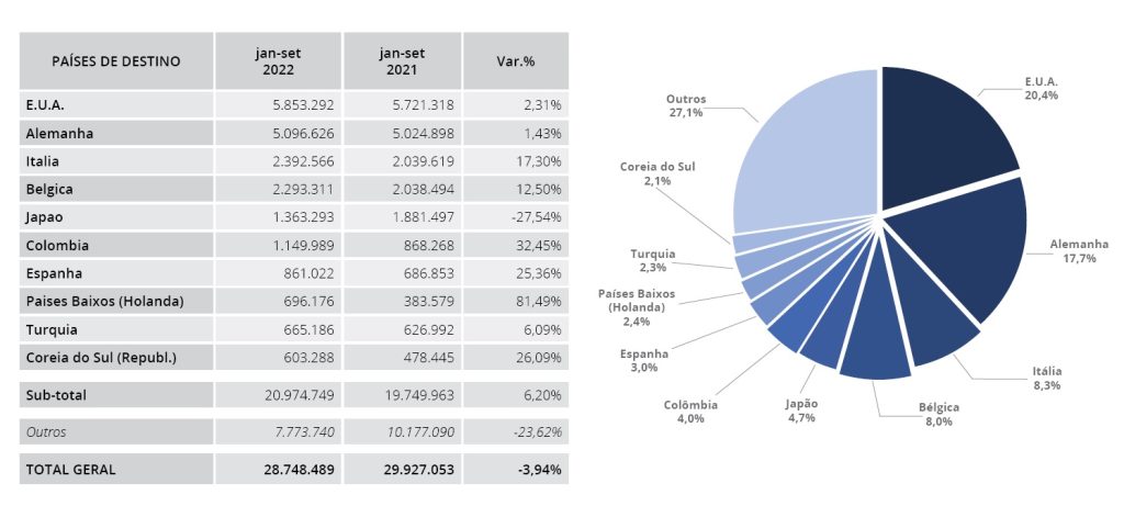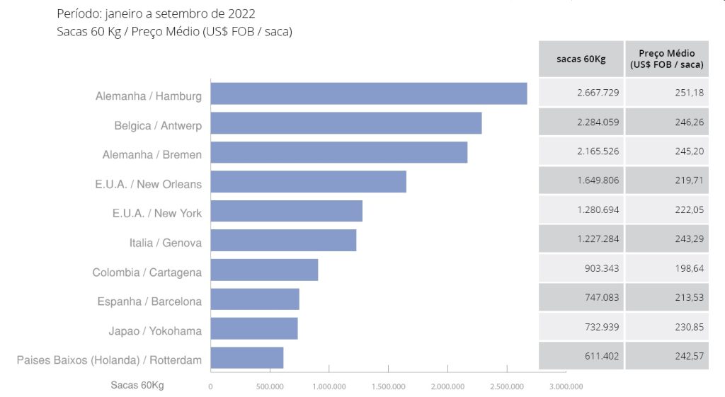 The US and Germany were the main destination for Brazilian coffees, with 5.8 and 5.1 million bags. They were followed by Italy, Belgium and Japan.