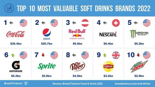 Coca-Cola is also the strongest soft drinks brand with elite AAA+ rating