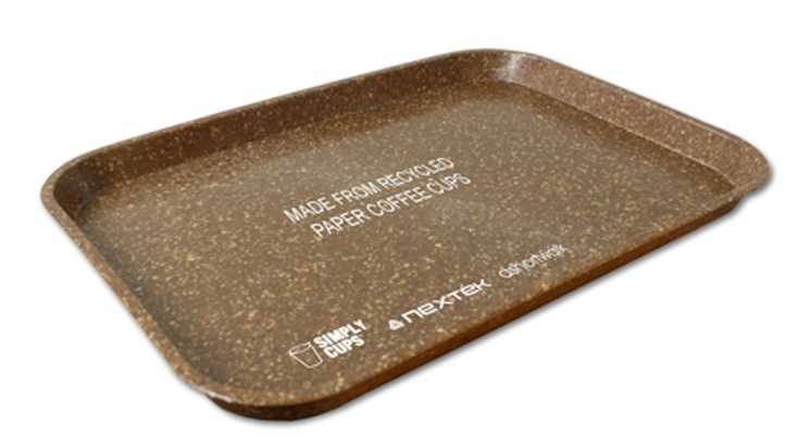 Nextek has developed a unique resin made from whole coffee cups that can be moulded into a number of strong and durable products. Less than 0.25% of the estimated 3 billion paper cups used annually in the UK alone are being recycled, Nextek said – but calls for disposable paper cups to be more widely recycled ignore the complex challenge of separating out the paper from the plastic layer which makes it leak-proof.