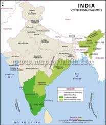 Karnataka, Kerala and Tamil Nadu are three major coffee producing states, with combined output accounting for 98 per cent of the total output.