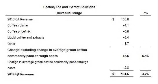 Coffee, Tea and Extract Solutions in 4Q 2019