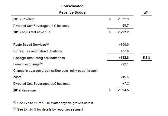 The below targets exclude the S&D Coffee and Tea business whose sale was announced on January 31, 2020 and whose operations will be included in discontinued operations. The sale of S&D Coffee and Tea is expected to close in the first quarter of 2020. The targets do not include the Primo Water Corporation (“Primo”) acquisition which is expected to close during the first quarter of 2020. Upon closing the Primo transaction, a modeling call will be held in order to provide guidance around 2020 expectations inclusive of Primo.