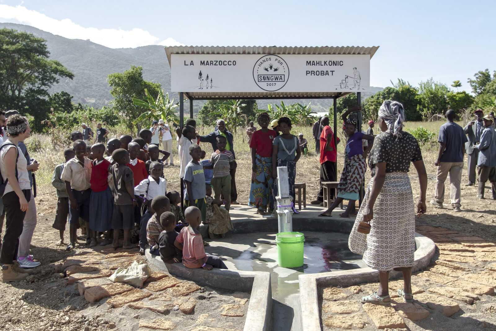 Following the construction and inauguration of wells with platforms and pumps in 2017, proceeds from Hands for Songwa (a percentage of the sale of products manufactured by the partners) will be donated in 2018 towards additional wells to ensure that members of the community residing near the Songwa coffee farm have access to clean water.