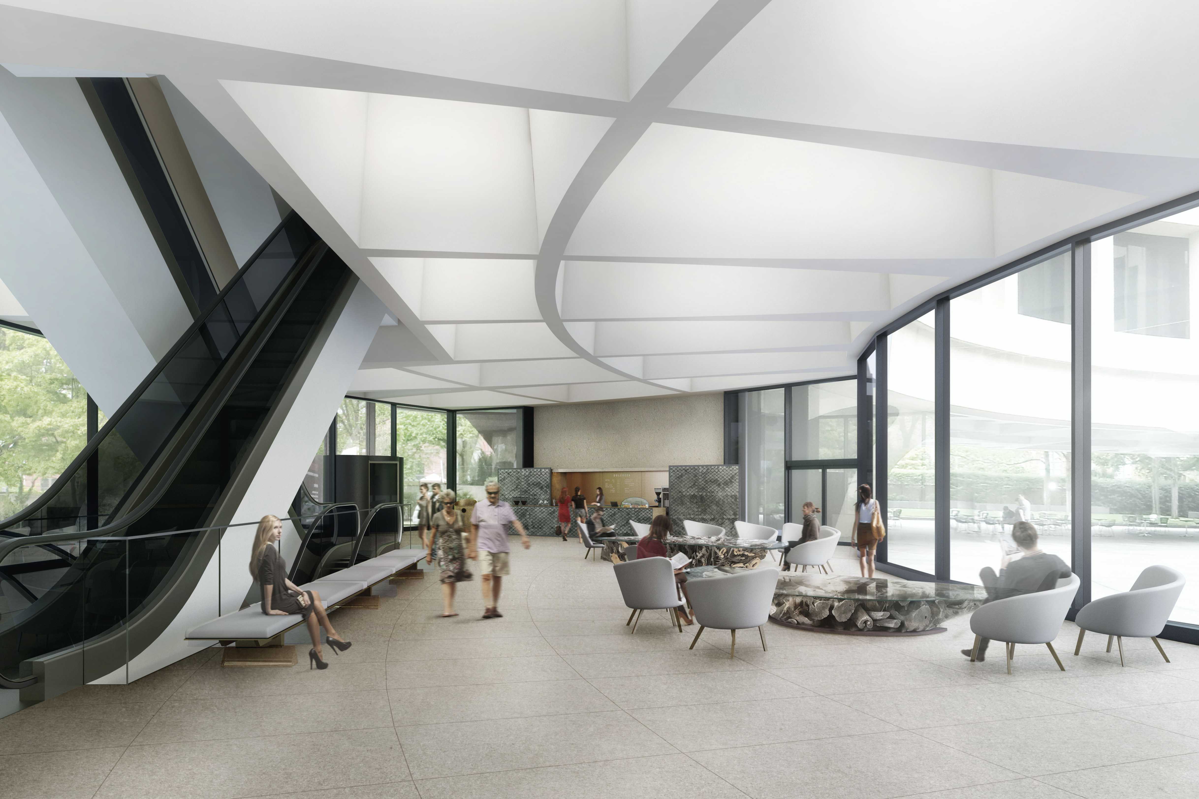 - An open and elevated feel with views down to the National Mall, thanks to the removal of a dark film covering the lobby’s 3,300-square-foot windows.