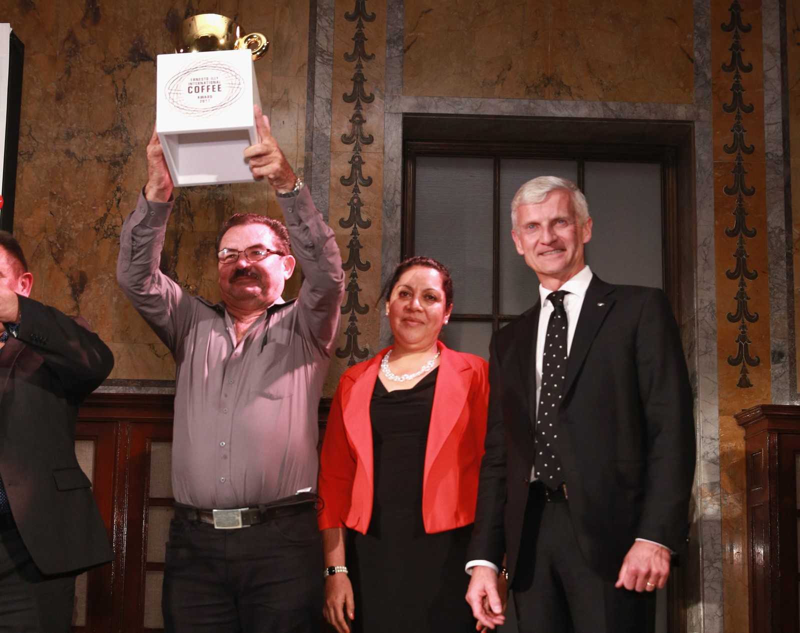The top-scoring coffee lot was named from among 27 of the world’s best lots from the 2016/2017 harvests in nine countries, at a gala on Monday attended by representatives of each grower and delegates from each nation.