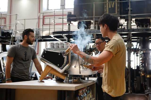 There is also another point in the assembly line that features yet another photo: a professional machine during assembly. And another writing to ponder: “Let’s make coffee dream”.