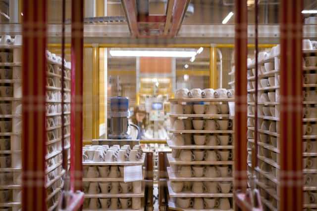 We have also been highly innovative in load handling, beginning in the early 2000s. We built automated lines to transport the clay mixture to the lathes (where we shape the cups), move the unfired cups to be glazed, and then feed them automatically into the kilns, where they are fired at 1400°C for an entire day.