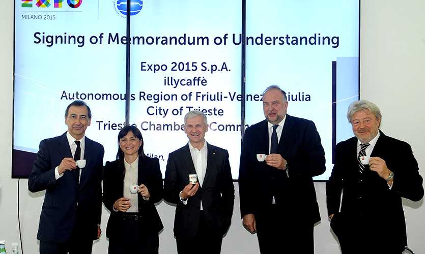 The signature took place during a meeting between Giuseppe Sala (Commissioner of the Government of Italy for Expo Milano 2015), Andrea Illy (President and CEO of illycaffè), Debora Serracchiani (President of the Friuli Venezia Giulia Region), Roberto Cosolini (Mayor of Trieste) and Antonio Paoletti (President of the Chamber of Commerce of Trieste).