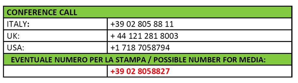 GRAND DUCHY OF LUXEMBOURG – IVS Group informs that the conference call on results at 31 December 2019 is scheduled on March 25th, 2020 at 16.00 (CET). Contact numbers are reported below.