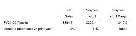 The Company increased its full-year fiscal 2021 net sales, adjusted earnings per share, and free cash flow outlook.