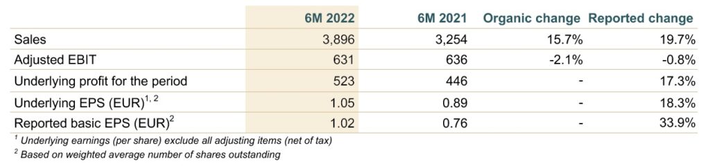 Organic adjusted EBIT was 2.1% down to EUR 631 million. Underlying EPS was 18.3% up to EUR 1.05.