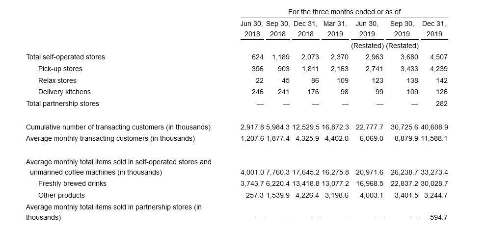 - Revenues from partnership stores mainly consist of material sales to the partnership stores, profit-sharing revenue from the partnership stores for the integrated store operation solution including using the Luckin Coffee or Luckin Tea brand.