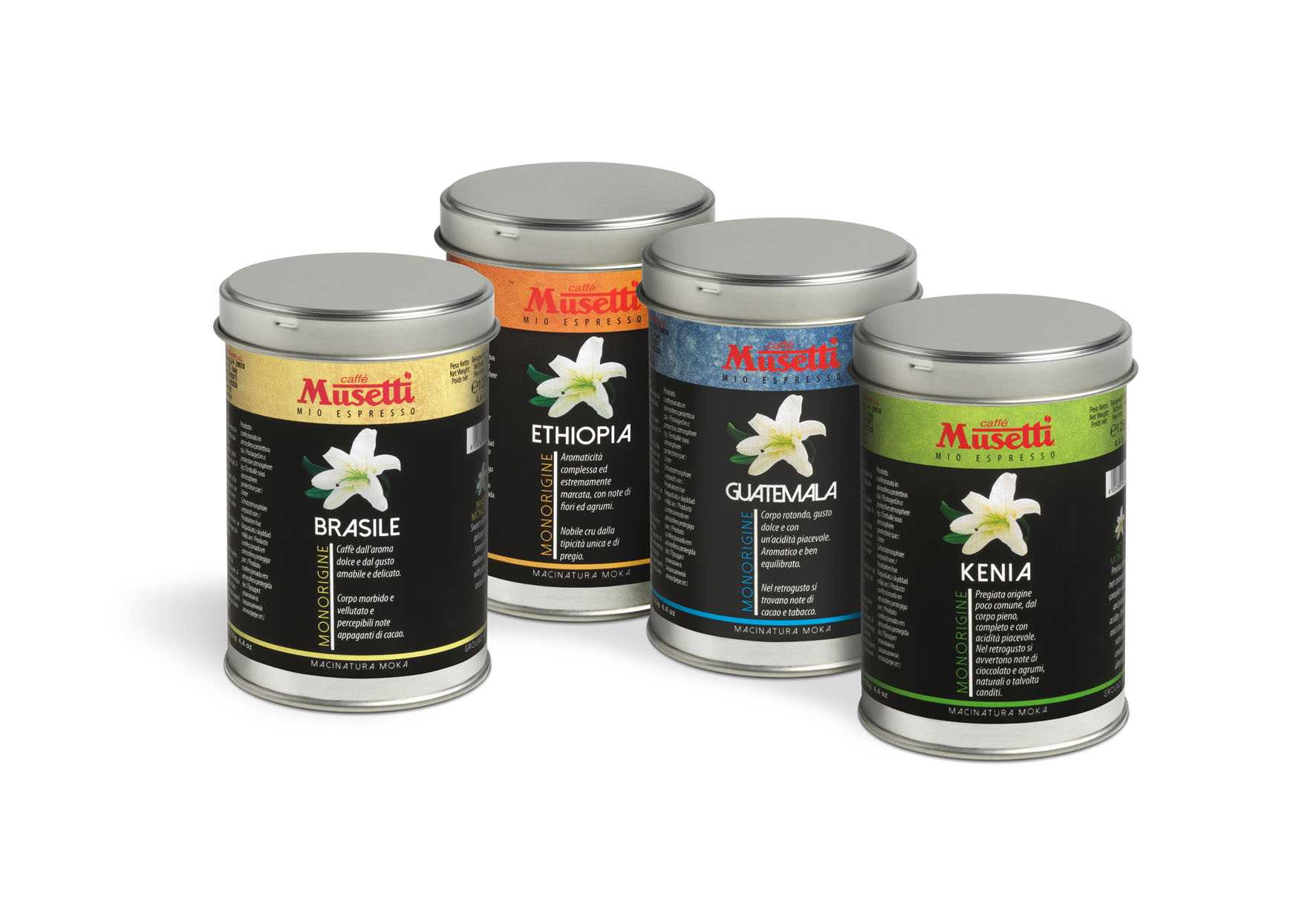 Musetti, more and more future-oriented, pays great attention on the single origin coffee. Ethiopia, Guatemala, Brazil, Colombia, Burundi and Kenya are the single origins presented in this edition of Host. Ethiopia Sidamo G2 is a noble cru characterized by a complex and extremely strong aroma, with notes of citrus and flower.