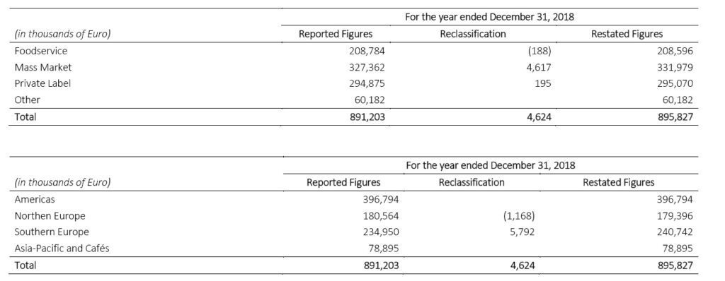 • the decrease of roasted coffee sales price resulting from the decrease in the average purchase price of green coffee which was partially offset by the positive effects of a different mix in the sales channels in 2018 and 2017.