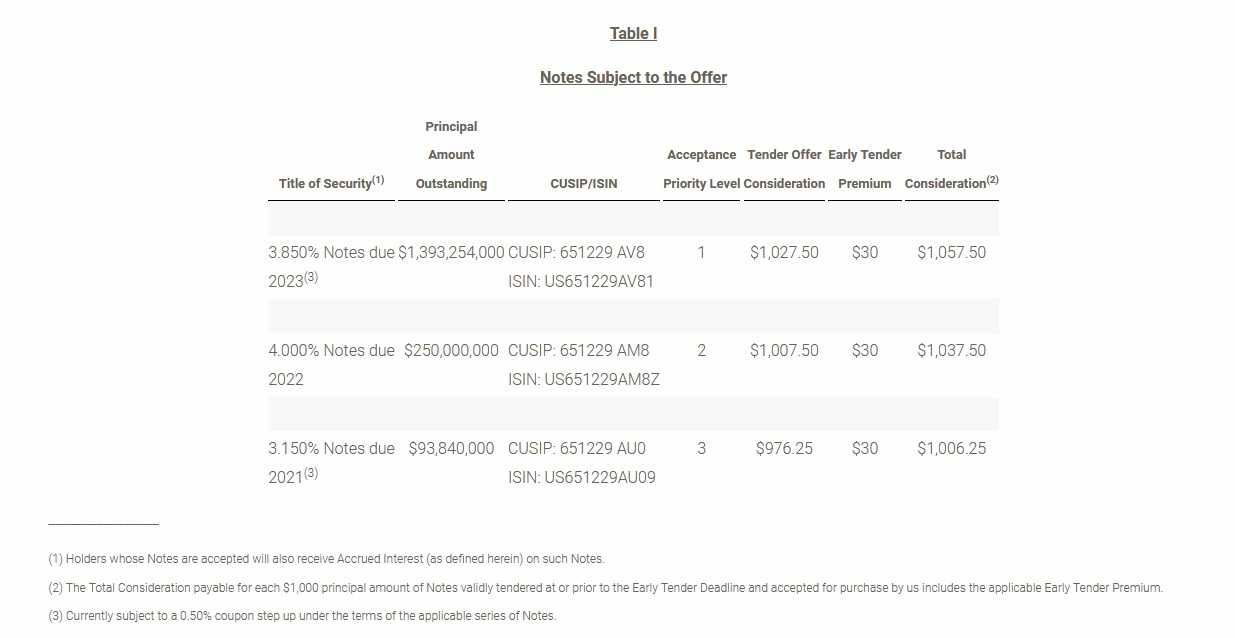 Promptly after the Early Settlement Date, the Company will also issue a press release specifying, among other things, the aggregate principal amount of each series of Notes validly tendered at or prior to the Early Tender Deadline and accepted for purchase, as well as the results of proration, if applicable.