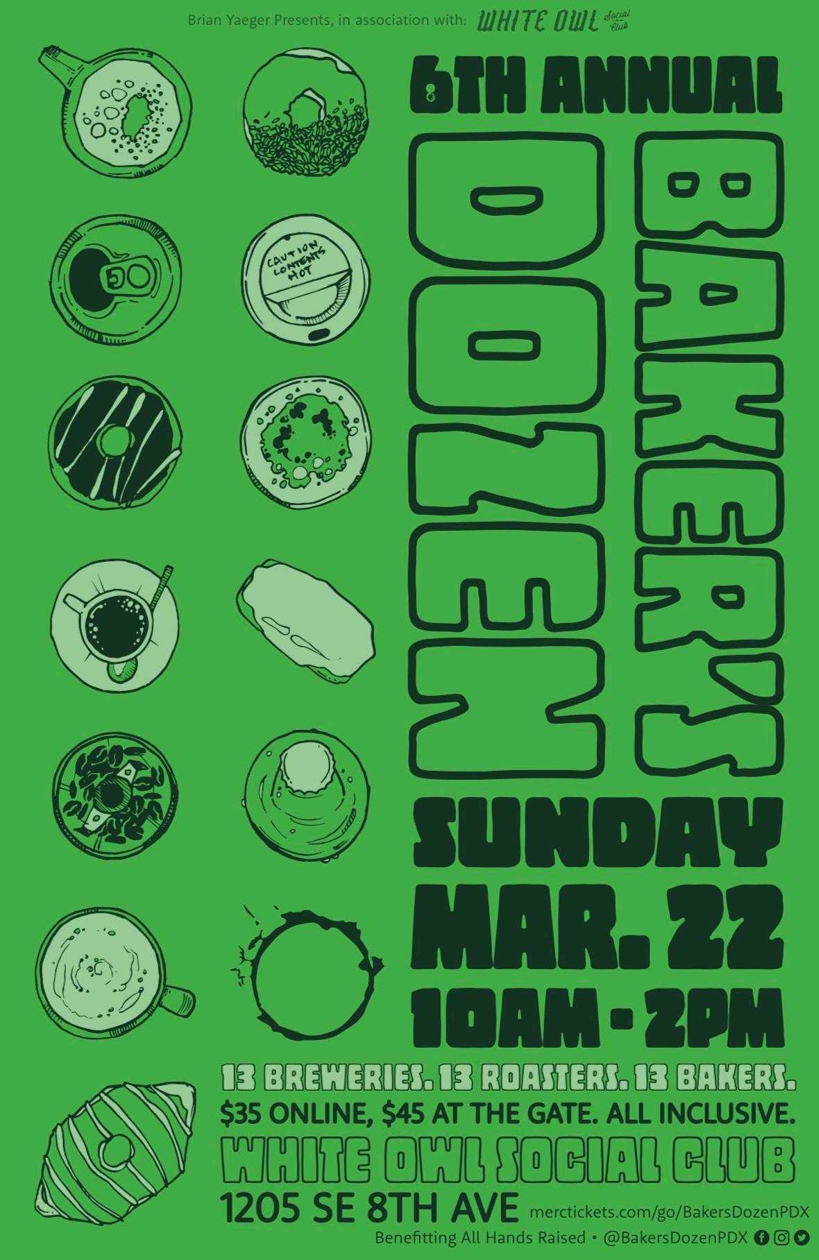 The festival moves to a new venue with a covered patio, White Owl Social Club (1205 SE 8th Ave.) on Sunday, March 22, from 10 a.m. to 2 p.m.Last year the event sold out in advance and this year tickets are significantly even more limited (to ensure attendees don’t miss out and keep lines shorter) and are available for $35($45 at the door if available) at Merctickets.com/go/BakersDozenPDX