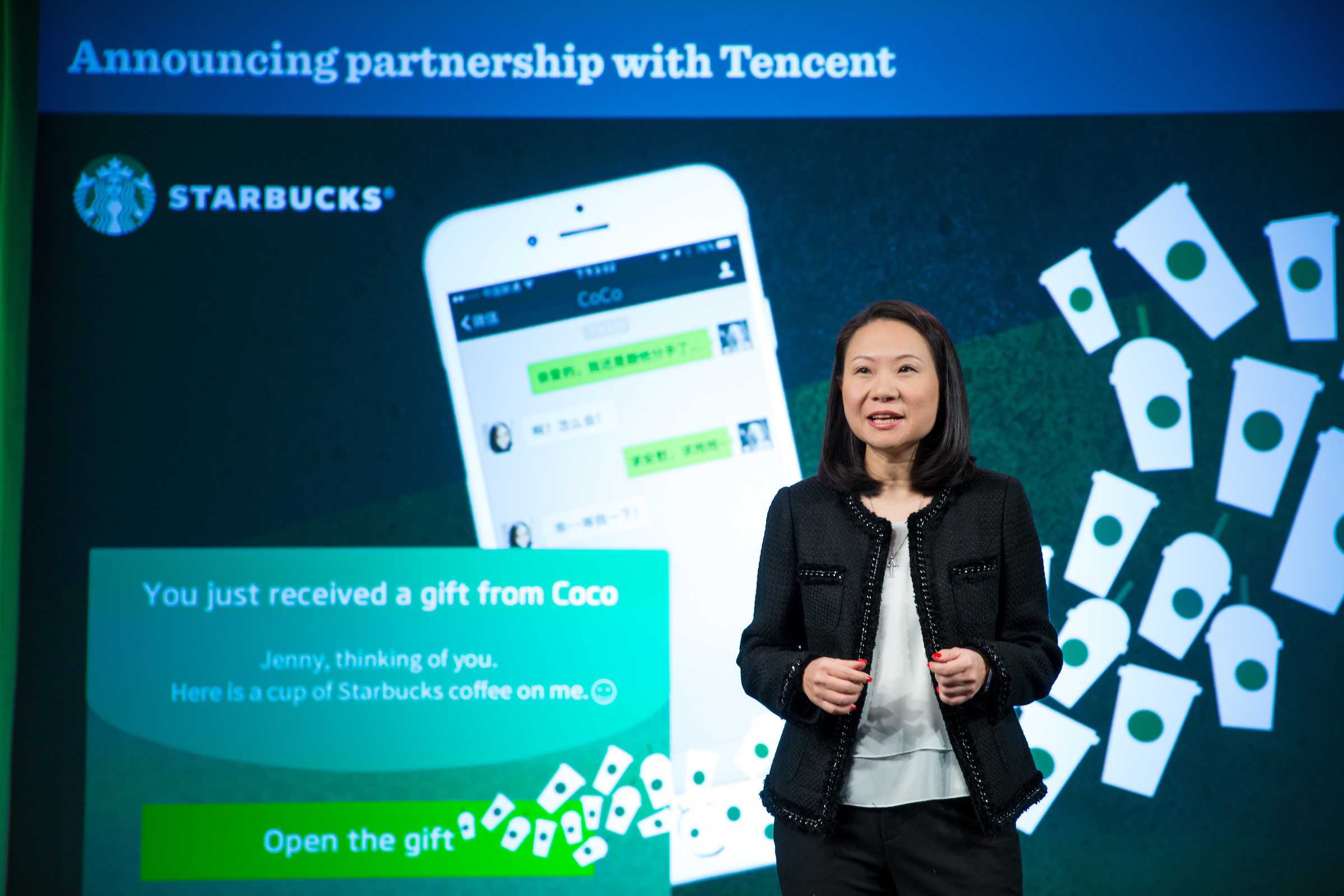 “Starbucks and Tencent share similar values to enable greater human connections through our respective products and services, and I am pleased to partner with an established and respected social and mobile industry leader in China,” said Belinda Wong, ceo, Starbucks China (in the picture).