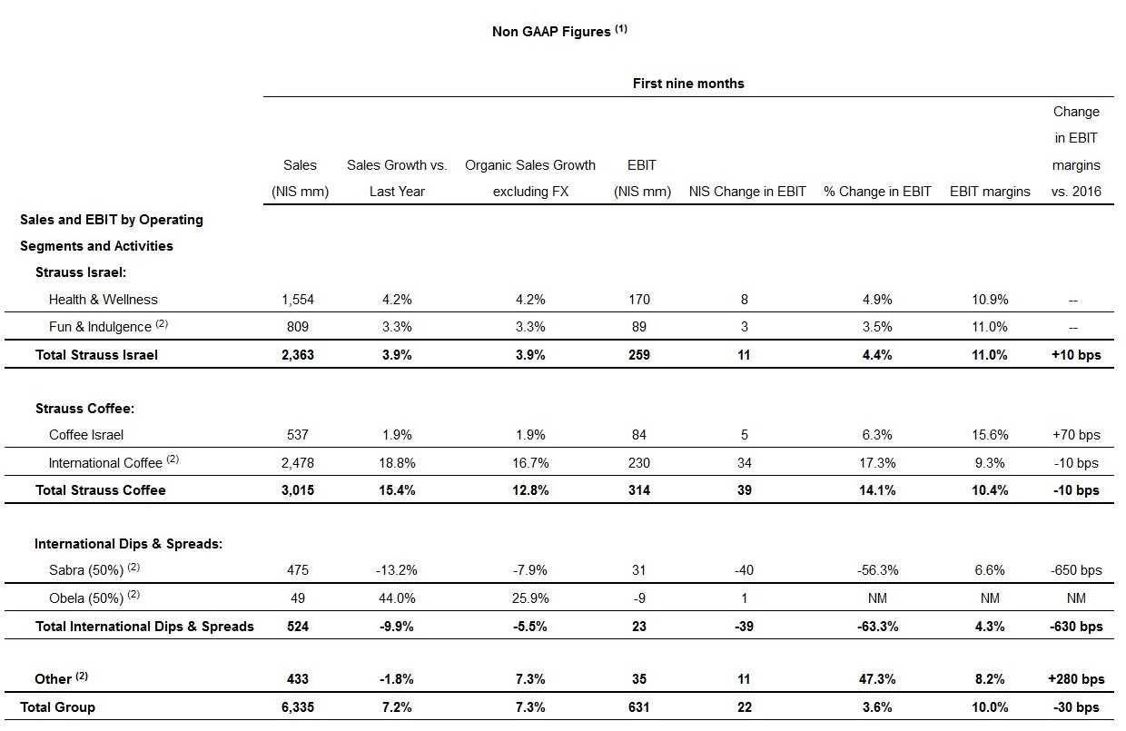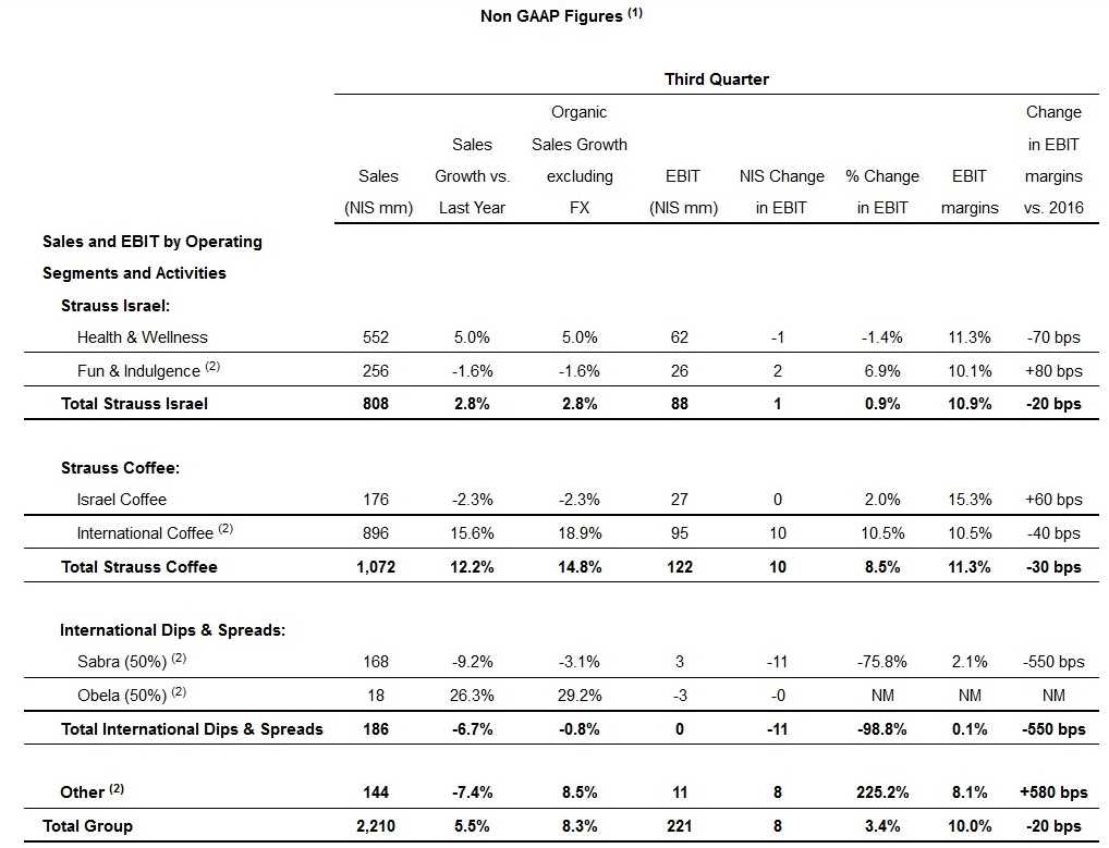 The third quarter perpetuates the trend of prior quarters and demonstrates a strong performance by Strauss Israel and noteworthy results achieved by the Group’s global growth drivers in the coffee and water companies, along with continued focus on efforts to improve Sabra’s results.