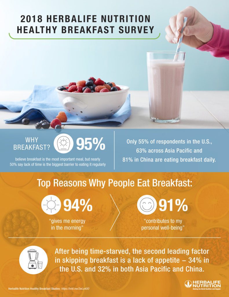 “Whether you’re pressed for time, or you’re simply not hungry in the morning, missing breakfast is a big mistake,” said Dr. John Agwunobi, co-president, and chief health and nutrition officer, Herbalife Nutrition.