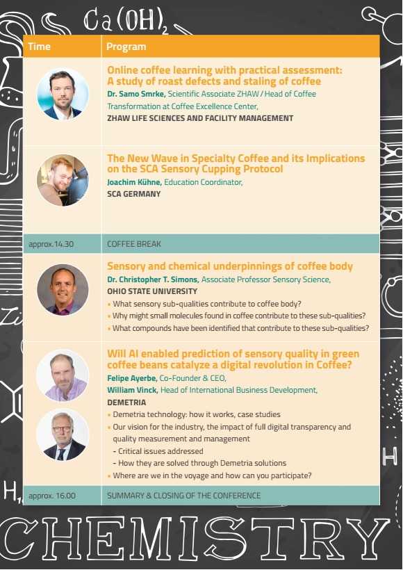 “Sensory and Chemical Underpinnings of Coffee Body”, Dr. Christopher T. Simons (Ohio State University). Its main topics will be: