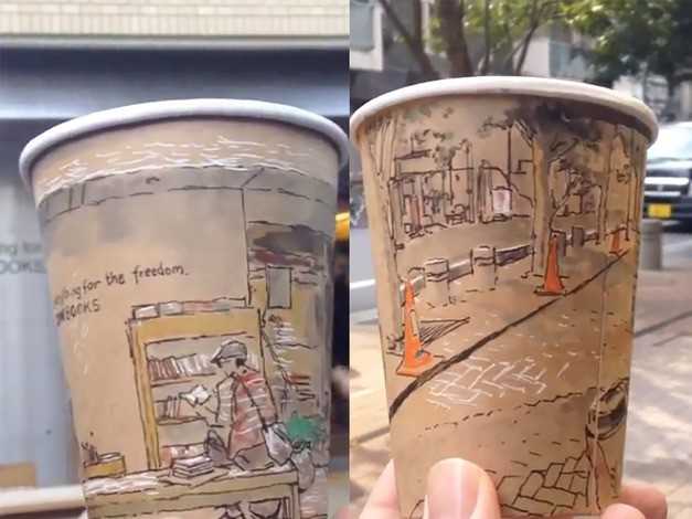 “Once I drew on the coffee cup, I filmed it and rotated the coffee cup at the same time.