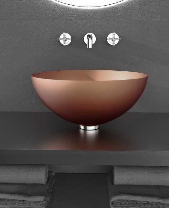 The Moonshine countertop washbasins with its hemispherical shape, embody a sleek and modern aesthetic thanks to the choice of this material.