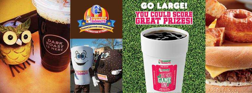 Starting November 3rd, Dunkin’ Donuts guests will receive a Go Hot. Game On! game piece tab on specially marked large or extra large hot beverage cups. Every game piece rewards fans for running on Dunkin’ with one of the following: