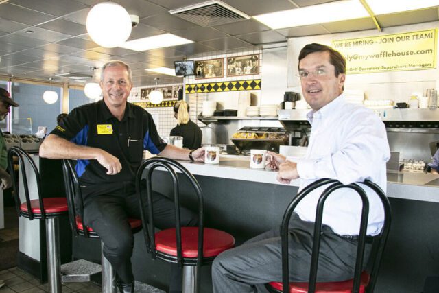 The partnership has percolated along nicely for 50 years, and began with a gentlemen’s agreement between two friends, much like the origins of Waffle House itself.