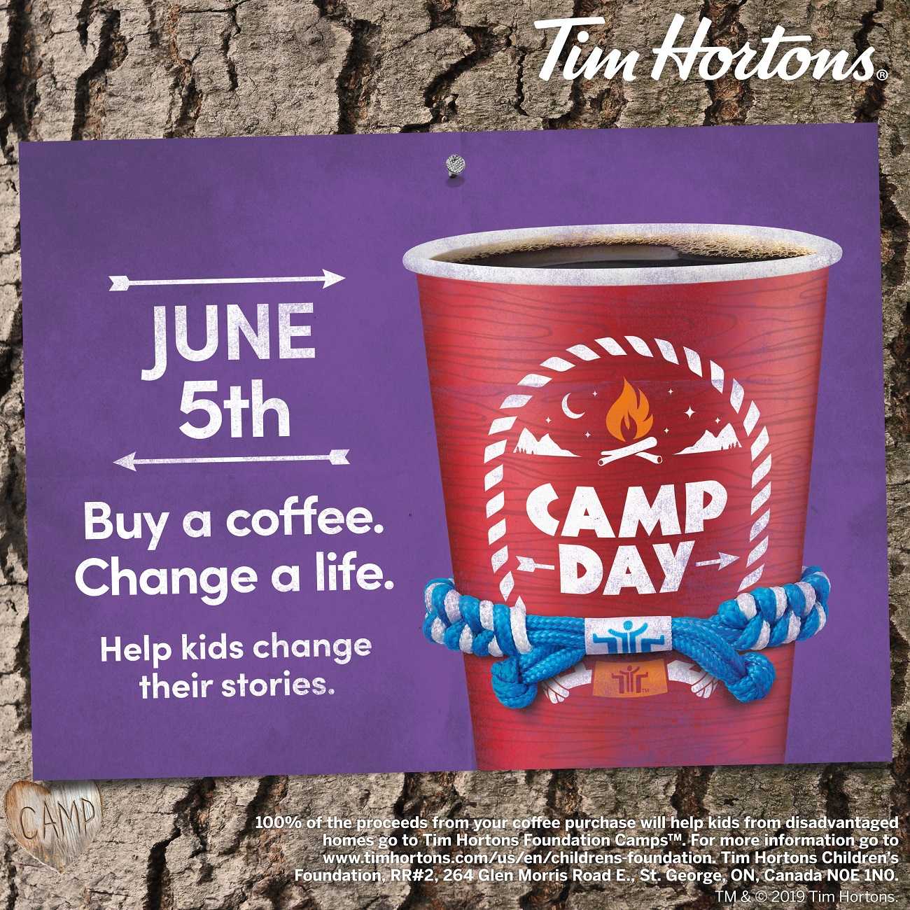 “Camp Day is as much a part of Tim Hortons as our Double Double is. In 2018, our guests helped us donate more than $13.1 million on Camp Day and this year I hope we can exceed this to help even more youth change their stories.”